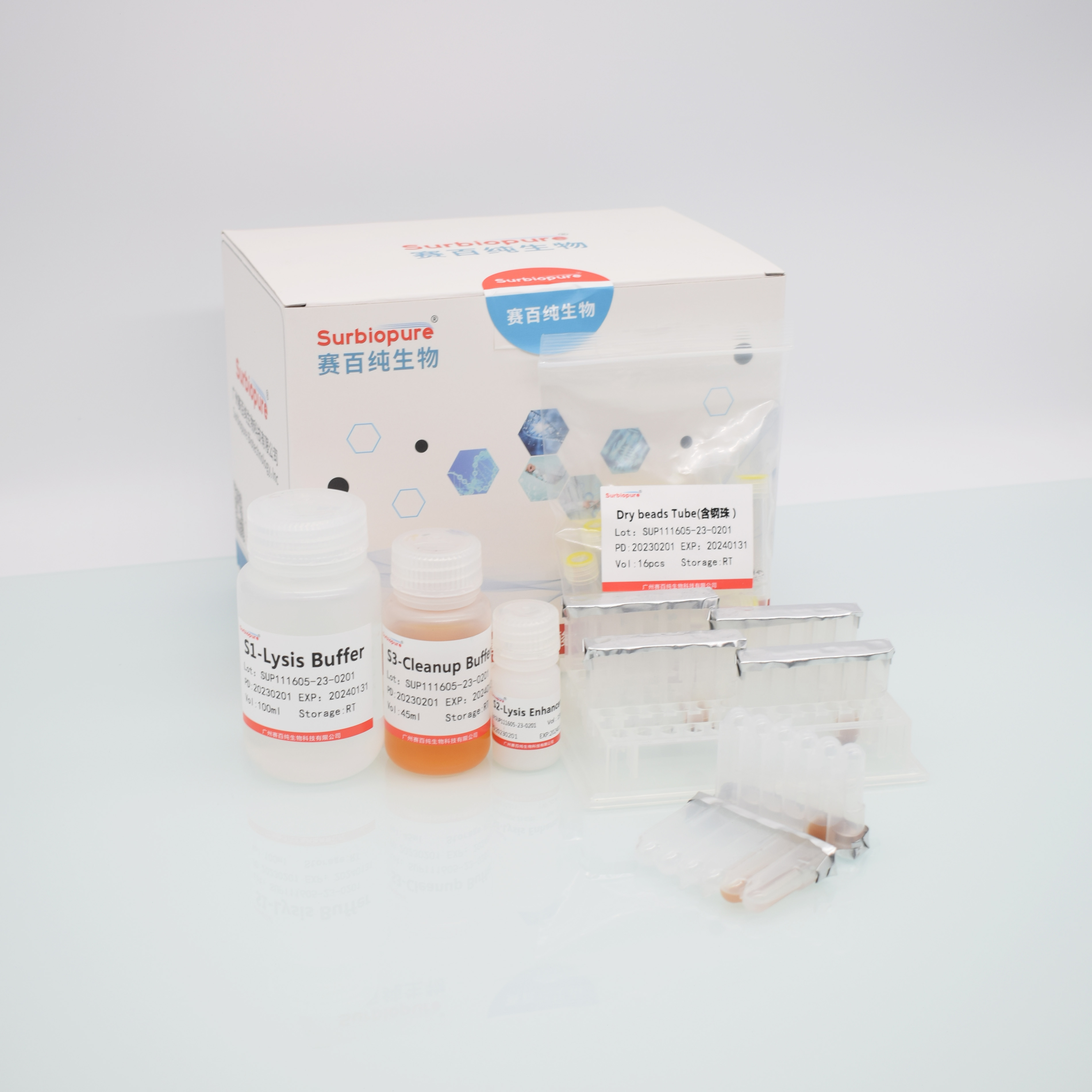 【產品名稱】糞便核酸提取試劑盒 英文名稱:nucleic acid extraction kit for faeces 【包裝規格】40份/盒、60份/盒、64份/盒、96份/盒 【預期用途】 本試劑盒是專門從糞便、肛拭子等樣品中病毒、細菌DNA的提取和純化而設計的。試劑盒采用磁珠法純化技術,并結合獨創的腐殖酸吸附劑技術,適合于從各種環境拭子、土壤、糞便、尿液病毒和細菌微生物宏基因組的篩查及NGS檢測。目前廣泛應用的例子:土壤,糞便,尿液,肛拭子;試劑盒能夠從此類樣品中提取高產量高純度的總DNA 。 【實驗原理】 試劑盒是采用高結合力的納米磁珠為基質。磁珠在高濃度離子化劑(如鹽酸胍或異硫氰酸胍)條件下,可通過氫鍵和靜電等物理因素吸附核酸而形成磁珠核酸復合物,而蛋白質或其它雜質不被吸附而去除。吸附了核酸的磁珠經洗滌去除蛋白質和鹽,最后可以用低鹽緩沖液(如Buffer TE)或水,洗脫出納米磁珠上吸附的核酸。得到的核酸純度高,可直接用于各種下游實驗。此外,S3-抑制物清除劑溶液是我們獨創的腐殖酸吸附劑,該吸附劑可選擇性吸附DNA樣品中的腐殖酸等抑制因子,提高DNA純度。111601