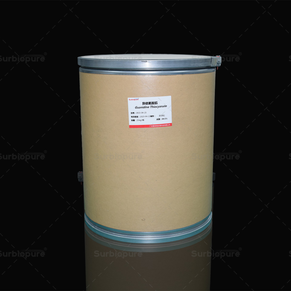 異硫氰酸胍 核酸提取試劑原料 現貨 分子式:CH5N3·HSCN 產品等級:優級品 外觀:白色結晶 容量:25kg/紙板桶 純度:99.5% CAS:593-84-0 產品用途:核酸提取試劑A-1003