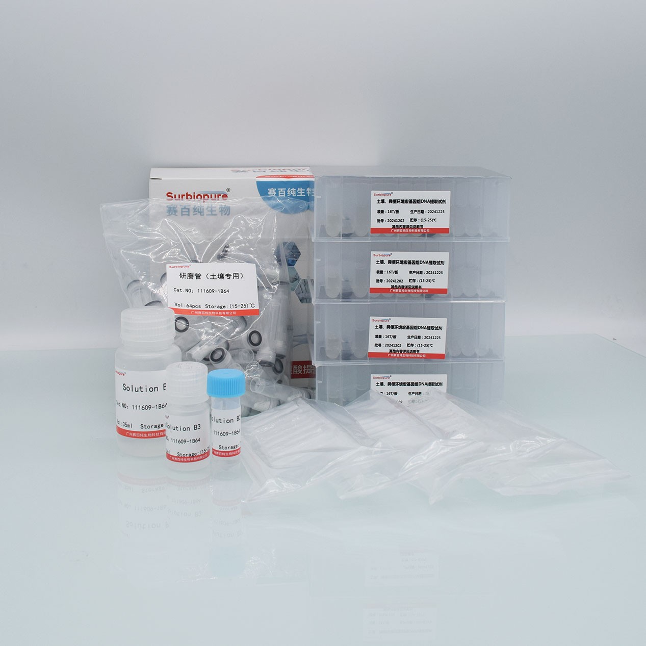 【預(yù)期用途】本試劑盒可從 250 - 500mg 多種土壤、糞便樣本中提取高純度 DNA,裂解液與研磨管協(xié)同作用充分裂解樣本釋放 DNA,獨特沉淀液可以有效去除腐殖質(zhì)、蛋白質(zhì)、色素等雜質(zhì),磁珠在結(jié)合液與洗脫液作用下實現(xiàn) DNA 快速分離純化。整個實驗過程無需酚/氯仿等有機試劑進行抽提,操作簡便,提取的 DNA 濃度、純度高,完整性好,無蛋白質(zhì)、鹽類及其他雜質(zhì)污染,可用于酶切、PCR、文庫構(gòu)建、Southern 雜交、熒光定量 PCR、芯片分析、一代及二代測序等多種下游科研檢測實驗。
