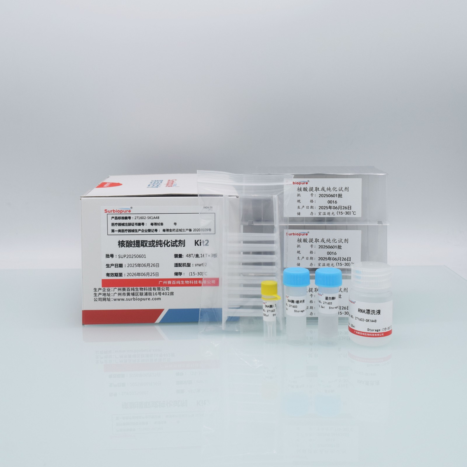 【預期用途】用于核酸的提取、富集、純化步驟。其處理后的產物用于臨床體外檢測使用。產品組成中不含可與樣本特異性結合的抗原、抗體、探針成分。