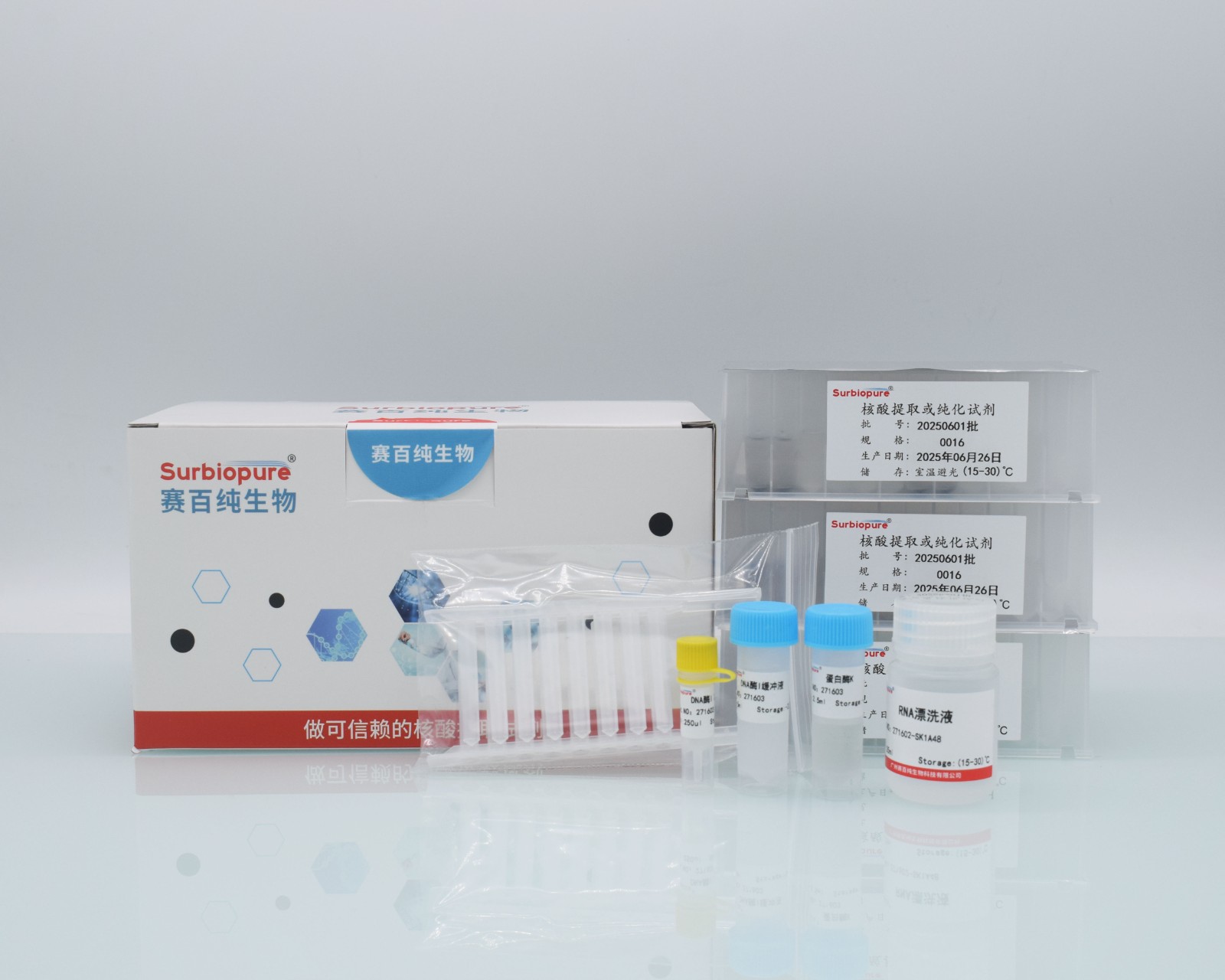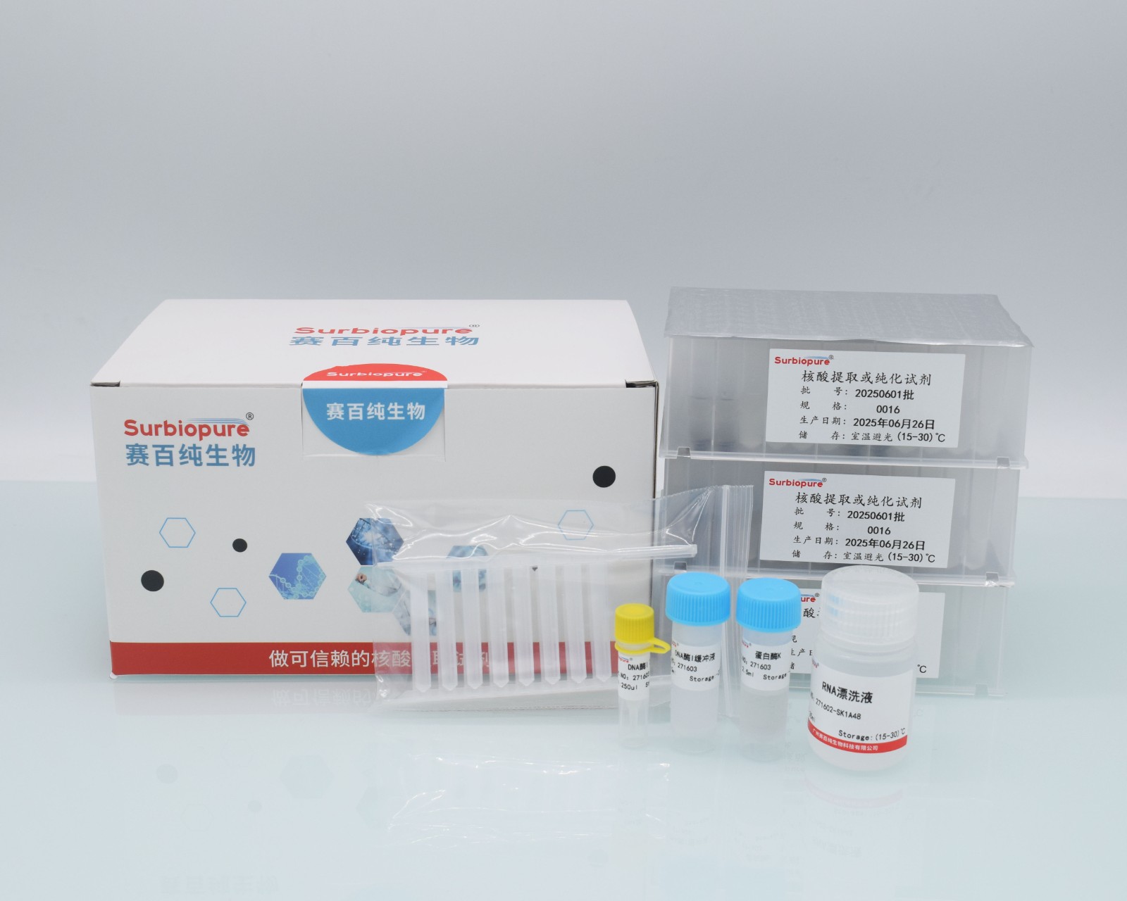 【原 理】本試劑盒適用于從新鮮或冷凍的全血(用檸檬酸鹽,EDTA或肝素等抗凝劑處理過的血液樣品)樣本中提取總RNA ,采用特異性結合核酸(DNA/RNA)的納米磁珠和獨特的緩沖液體系。硅羥基納米磁珠能高效、專一吸附DNA/RNA,可最大限度去除雜質蛋白等,提取的核酸(DNA/RNA)純度高,質量穩定,提取的總RNA具有較高的純度,沒有蛋白質和其他雜質污染,可直接用于下游實驗。